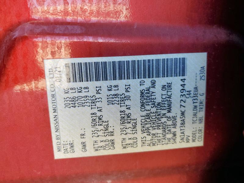 Run and Drive Lot number:91552325 VIN:5N1AT3BA5MC******