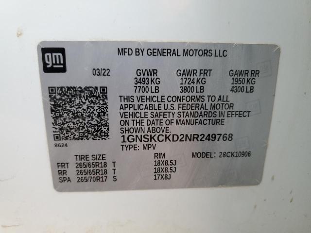 Run and Drive Lot number:91406505 VIN:1GNSKCKD2NR******