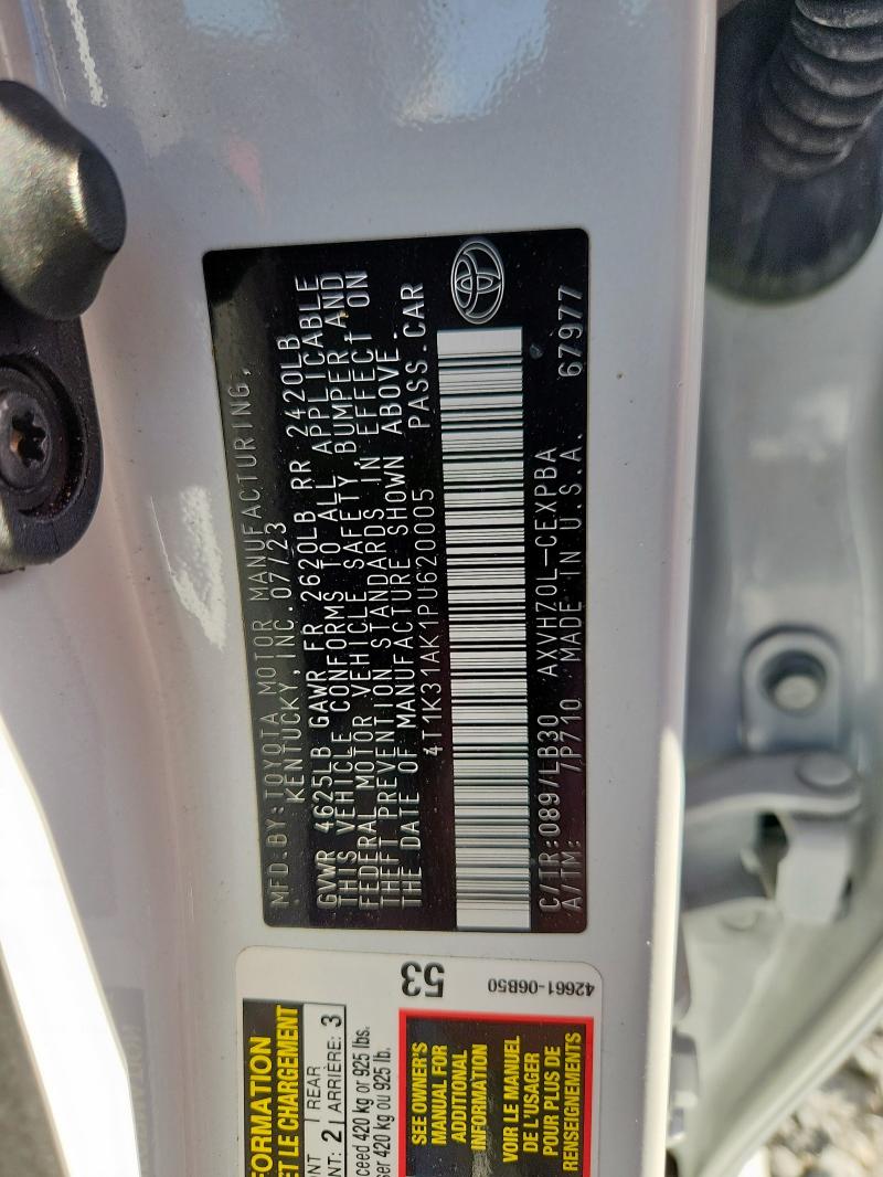 Run and Drive Lot number:91936075 VIN:4T1K31AK1PU******