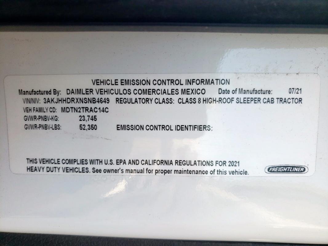 2022 FREIGHTLINER CASCADIA 126 SEMI TRUCK