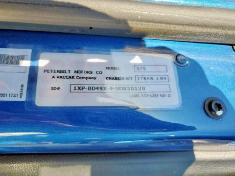 Run and Drive Lot number:91122325 VIN:1XPBD49X9ND******