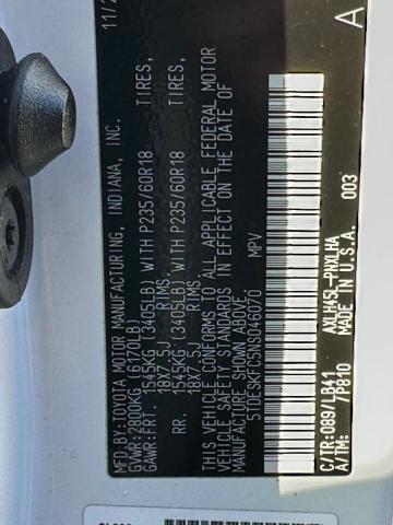Run and Drive Lot number:93366205 VIN:5TDESKFC5NS******